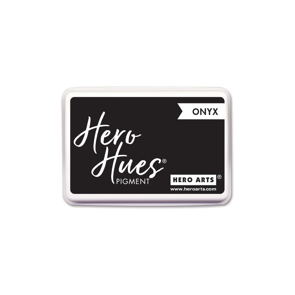 Hero Arts - Hero Hues Onyx Pigment Ink Pad Pigment inks are crisp and opaque. They sit on top of paper for a vibrant intensity, making them ideal for use with embossing powders as they dry a little slower than our other inks. Use a heat tool to speed up drying time. Clear lids highlight the beauty of the ink colors, which appear true to color in the pad. Acid-free, archival, and fade-resistant.