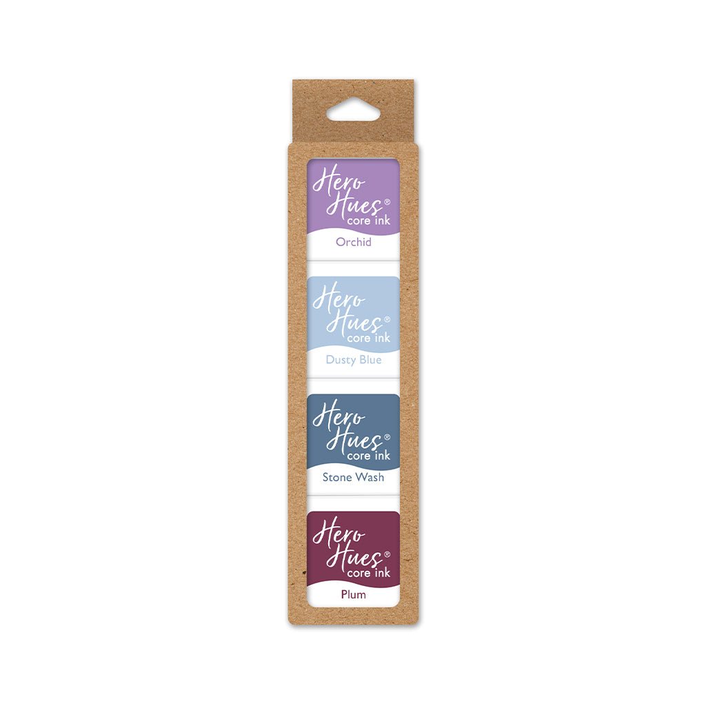 Hero Arts - Blues & Purples Core Ink Pad Cubes A 4-pack of 1.25" x 1.25" Hero Arts Core Ink Cubes featuring Orchid, Dusty Blue, Stone Wash and Plum.