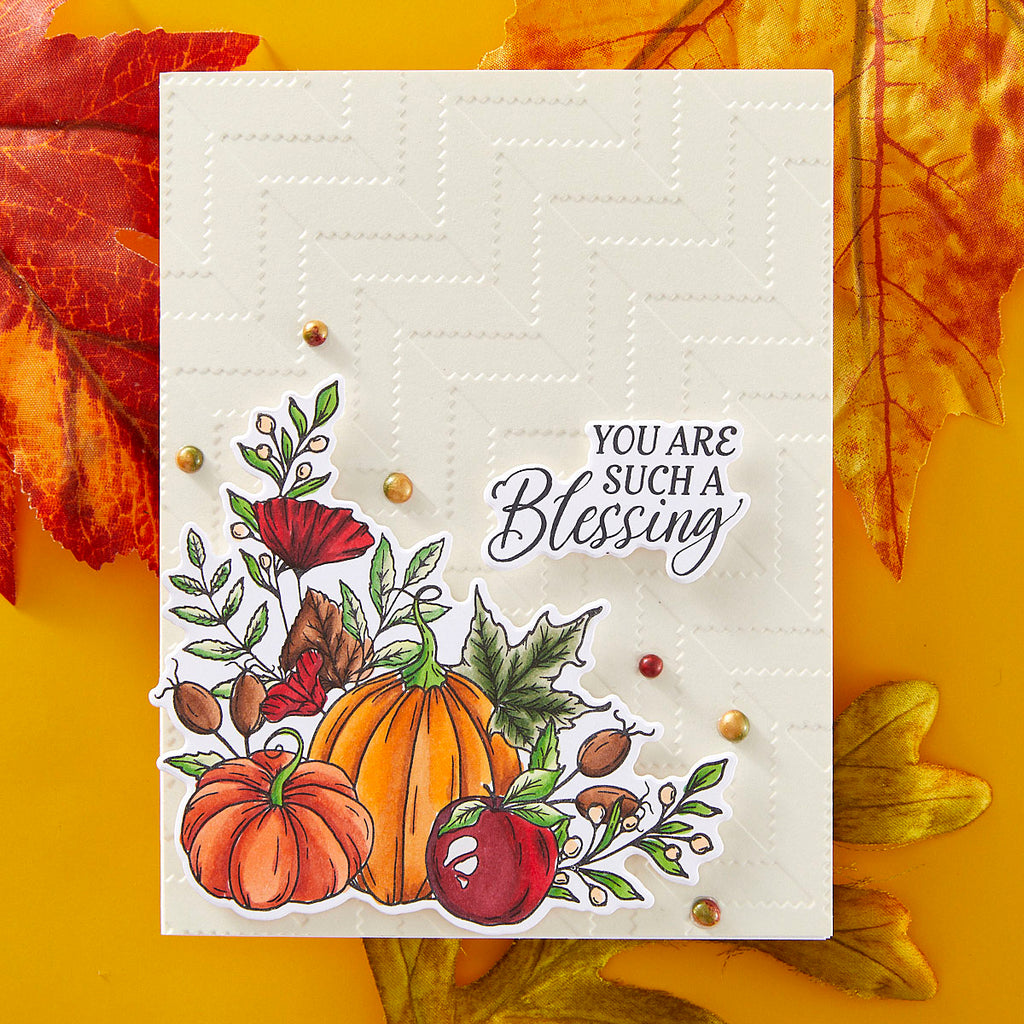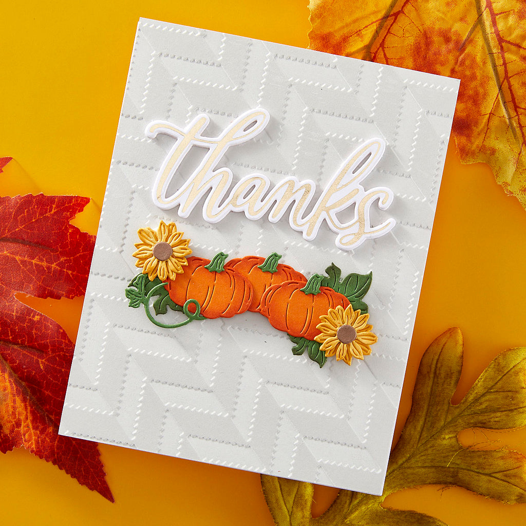 Autumn Chevron Embossing Folder of the Month released September 2024 to our Embossing Folder of the Month Club. This large embossing folder can make slimline, 5″ x 7″, and a variety of sized projects. Perfect for adding texture and dimension to your card projects.