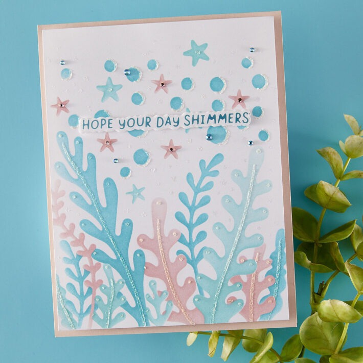 Let your creativity dive deep with this bold mix of warm corals, sun-kissed yellows, lush greens, and splashy ocean hues—perfect for pairing with this month’s under-the-sea dies, stamps, stencils, and more. Whether you're layering, die-cutting, or building dreamy underwater scenes, this assortment is the perfect foundation for cards that shimmer with summer magic.