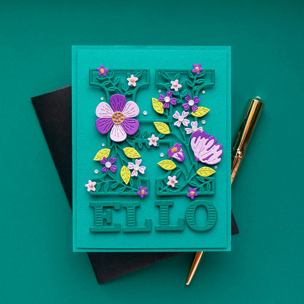 Blooming Hello - December 2024 Small Die of the Month: This delightful 12-piece die set features a beautifully intricate floral theme, perfect for adding a touch of elegance to your crafting projects. The design highlights blooming flowers and lush greenery, making it ideal for creating unique cards, gift tags, decorations, and more. Let your creativity blossom with this versatile and inspiring set!