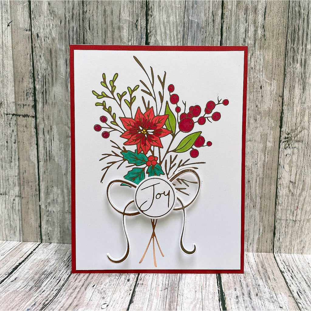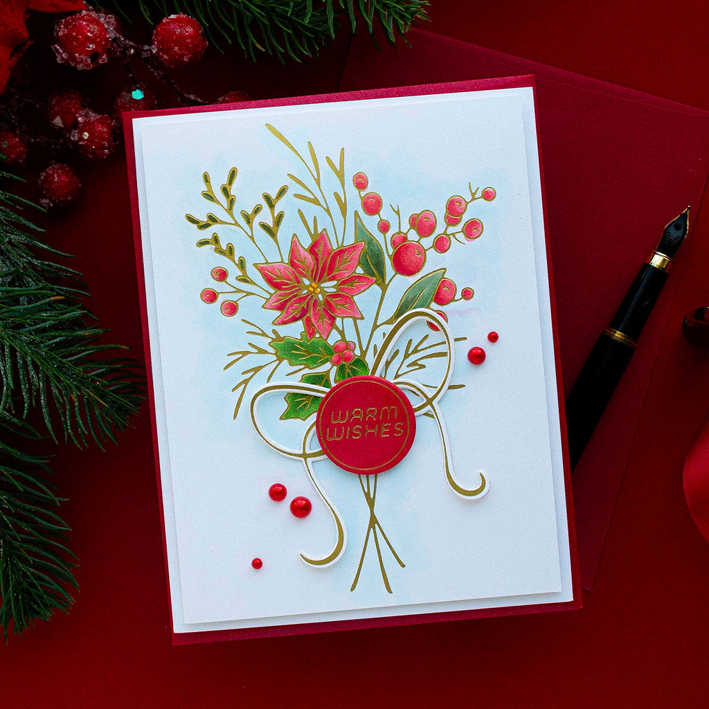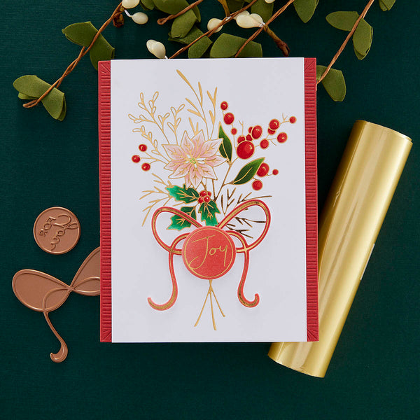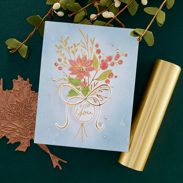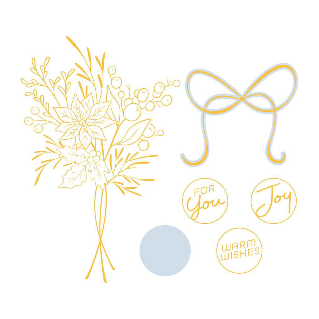 Bouquet Full of Joy - Glimmer Hot Foil of the Month (Plates & Dies Only). Has three Glimmer foil plates and two dies. Released October 2023 to our Glimmer Hot Foil Kit of the Month Club, it is a wonderful addition to your glimmer collection. Perfect for creating stunning holiday themed cards. Glimmer Hot Foil Plates are designed to be used with the Spellbinders Glimmer Hot Foil System (or other compatible hot foil system). Depending on its design, some plates may be used for letterpress and embossing.