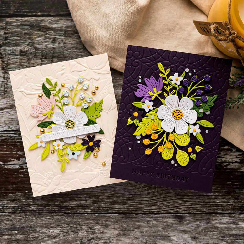 Club Blooms - Large Die of the Month this 23-piece Die Set, cuts, embosses, debosses, and stencils. Released January 2023 to our Large Die of the Month Club creates a sweet blooming floral arrangement. Use to create cards, décor, gift card holder, gifts, and more!
