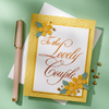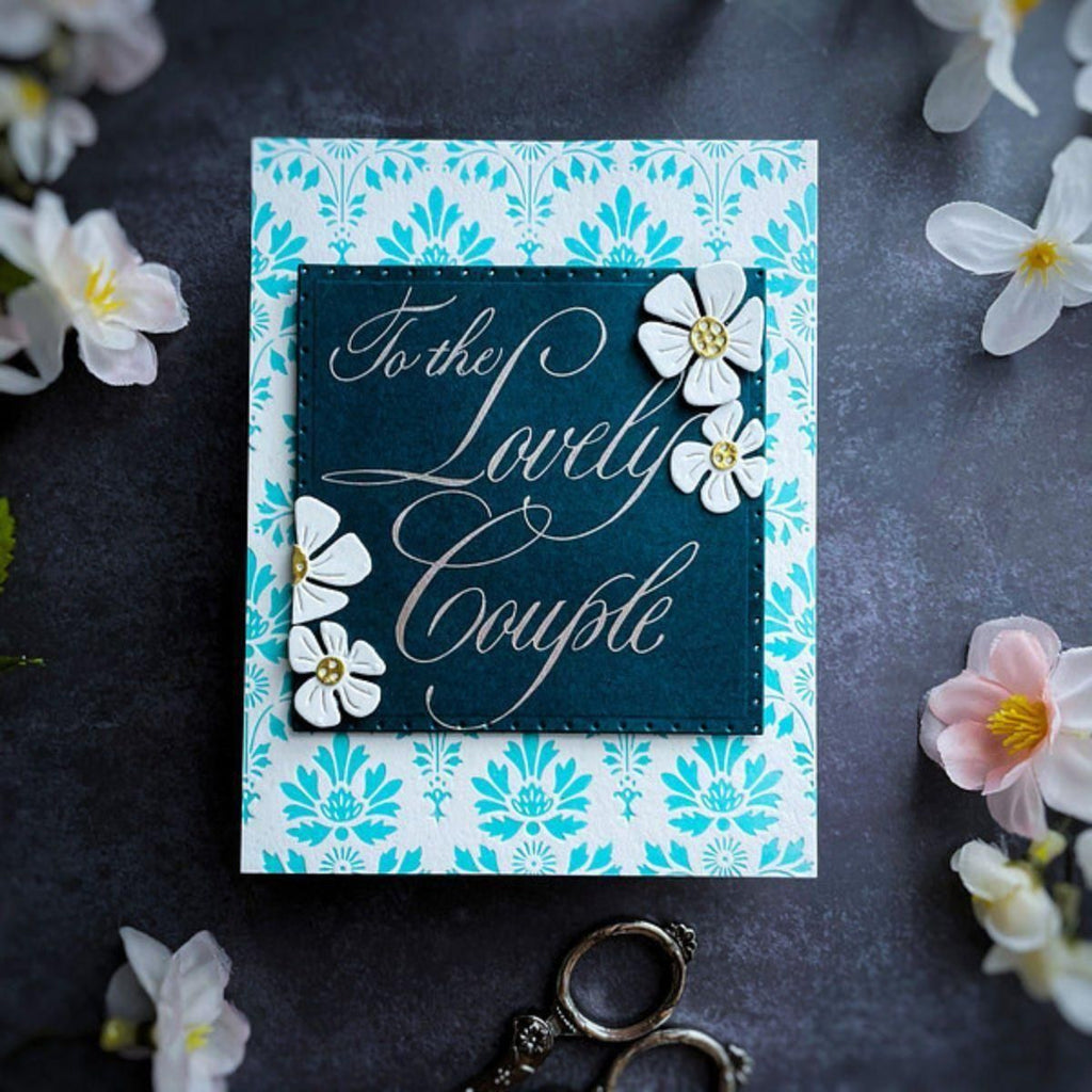 Copperplate To the Lovely Couple BetterPress Plate is part of the Copperplate On Your Wedding Day Collection by Paul Antonio. This plate presses To the Lovely Couple in an elegant Copperplate script onto your creation, and perfect for the occasion! Ink the plates with the BetterPress Ink to be pressed against the BetterPress Cotton Card Panel and Sheets for a crisp letterpress design.