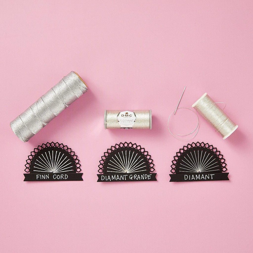 For Spellbinders stitching dies, 1 strand of Diamant metallic thread is equal to 4 strands of DMC embroidery floss.