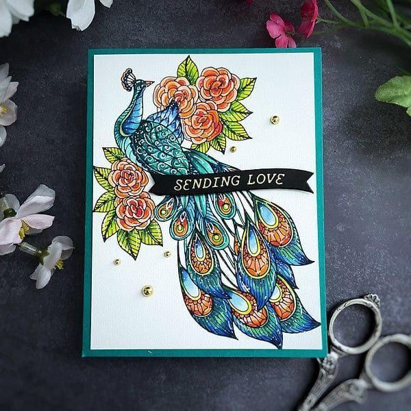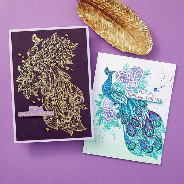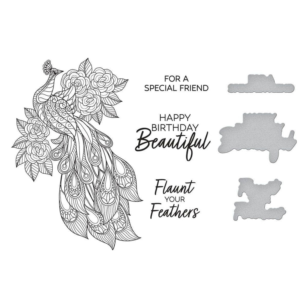 Elegant Peacock Press Plate & Die Set from the Peacock Paradise Collection by Dawn Bibby