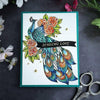 Welcome to Dawn Bibby from the U.K.! This is her debut collection with Spellbinders, and it is centered around a most magnificent bird, the Peacock. What a perfect design to commemorate her first collaboration with us.