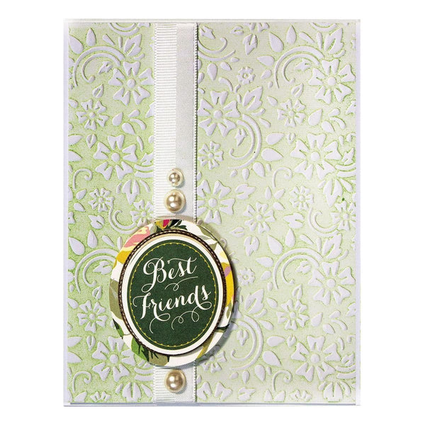 Spellbinders® Em-bossing Folders™ offers options for your beautifully detailed embossing and letterpress creations. The Flowers & Leaves folder brings movement of sweet swirly flowers in the design.