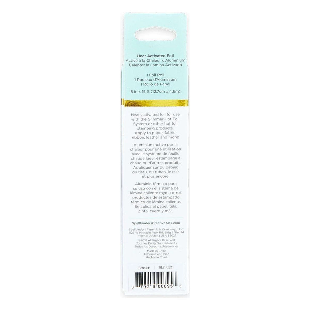 Glimmer Hot Foil Roll Pewter comes in a 15 foot roll (five inch width).