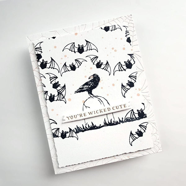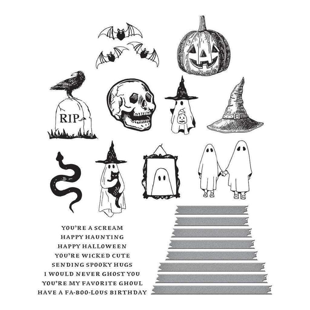 Halloween Icons Press Plate & Die Set is from the BetterPress Halloween Collection with this amazing set of 11 press plates and one thin metal cutting die. It has all the Halloween icons: from pumpkin, ghouls, bats witch hats and more. It even has a stack of eight Halloween-themed sentiments and a thin metal die that will cut the entire stack in one step. Perfect for those Halloween projects! Ink the plates with the BetterPress Ink to be pressed against the BetterPress Cotton Card Panel and Sheets for a crisp letterpress design.
