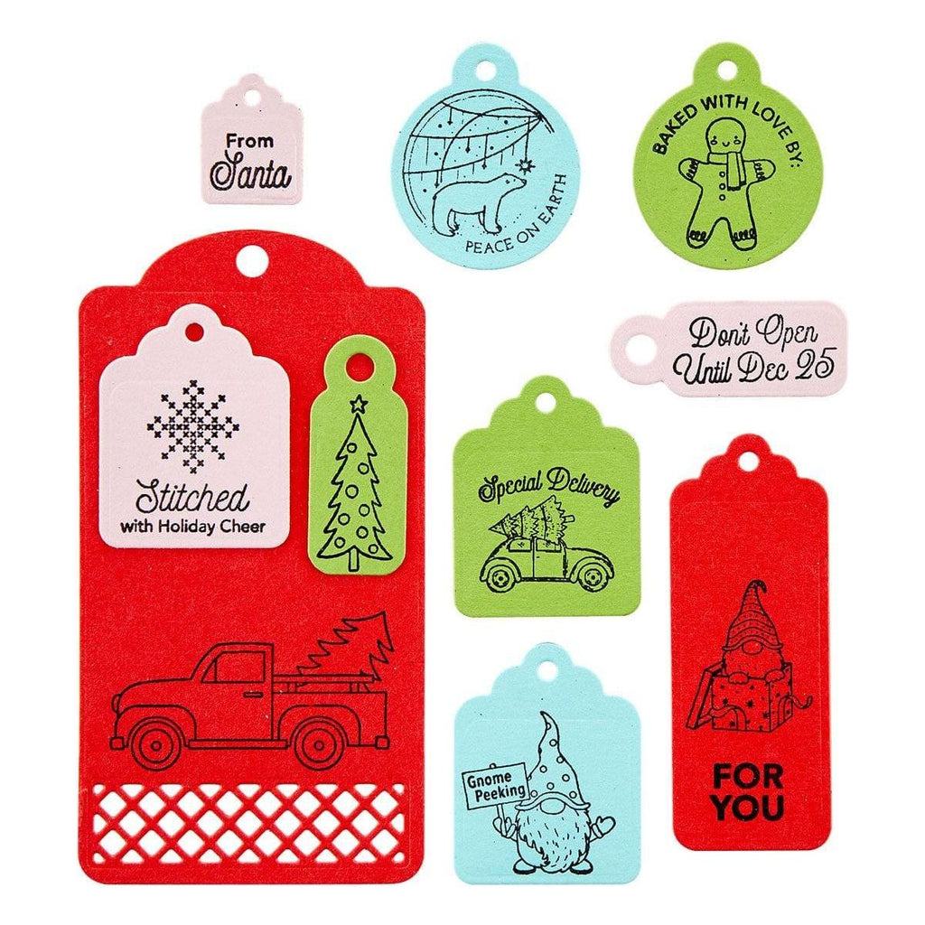 The Handmade Gift Tags Clear Stamp Set is from the Tinsel Time Collection. It has a set of 16 clear Photopolymer stamp images. A wide variety of sweet artwork and phrases stamped on gift tags would bring something fun to gift giving this holiday! The stamps work well with S3-427 Assorted Tags Dies Set and S3-433 Create a Decorative Tag Dies Set. These stamps are made in the U.S.A. and work with an acrylic block.
