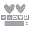 Labels & Icons Etched Dies are from the Crafty Babe Collection with Simple Stories. Make tabs or labels with this set of nine thin metal cutting dies, then mix and match the five designs of heart, sparkle, camera, flower and scissors for endless options! A dotted heart and its shadow are also in the set. Perfect accents to the Crafty Babe Collection with Simple Stories!