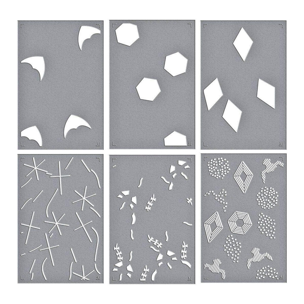 Layered Flying Kites Stencil is from the Sky's the Limit Collection by Simon Hurley and made of durable mylar stencil material. The six stencil sheets give a detailed kite background for a one-layer look or use mediums like paste for dimension. For an embossed texture, use E3D-136 Flying Kites 3D Embossing Folder (sold separately or purchase as a bundle, BD-0958 Flying Kites 3D Folder and Stencil Bundle).