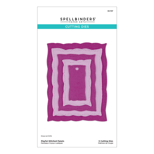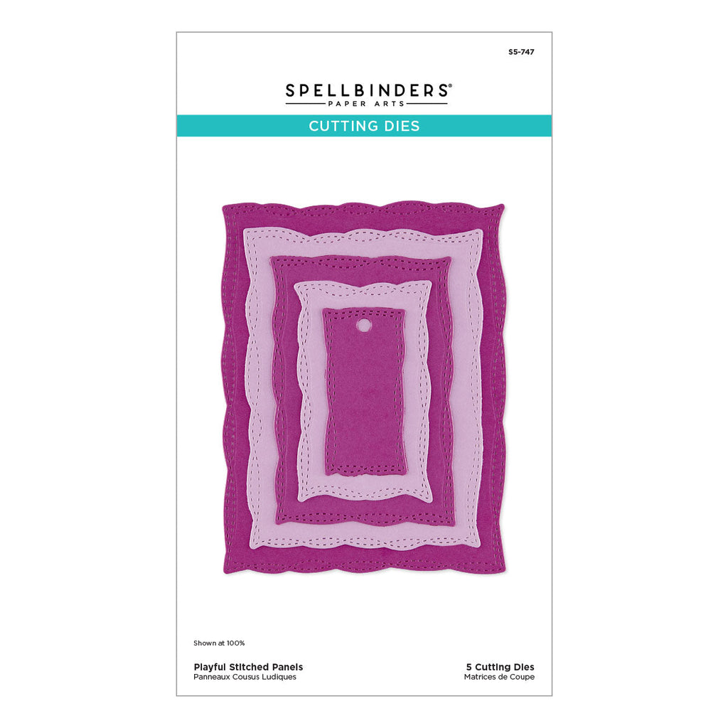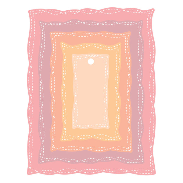 Playful Stitched Panels Etched Dies are from the Poppy Song Collection. This set of five thin metal cutting dies creates a series of nesting rectangles with wavy edges and double stitching designs for movement. Use them as solid shapes to anchor your design, create frames by nesting two, or make shaped cards. So many versatile design options. The smallest shape is a cute tag to accent a project or gift.