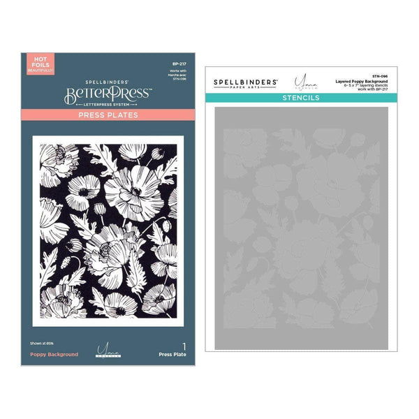 Poppy Background Bundle is part of the Yana's Poppies Collection by Yana Smakula. It includes BP-217 Poppy Background Press Plate and the coordinating Layered Poppy Background Stencil. The stencil set is exclusive to the bundle. Here’s your chance to get both as a bundle! Yana’s Poppies Collection by Yana Smakula is a lovely offering of poppy designs through dies, stencils and press plates. It is a wonderful addition for paper crafters who love this floral motif!