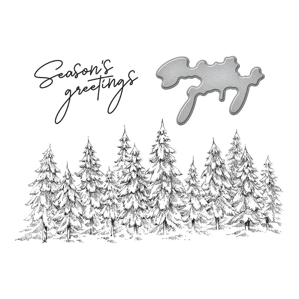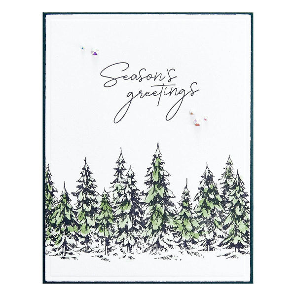 Season’s Greetings Press Plate & Die Set is from the More BetterPress Christmas Collection and includes a set of two press plates and one thin metal cutting die. The largest press plate is a line of beautiful evergreen trees which makes a beautiful border. The set also includes a Season’s Greetings sentiment with its coordinating die. Ink the plates with the BetterPress Ink to be pressed against the BetterPress Cotton Card Panel and Sheets for a crisp letterpress design.