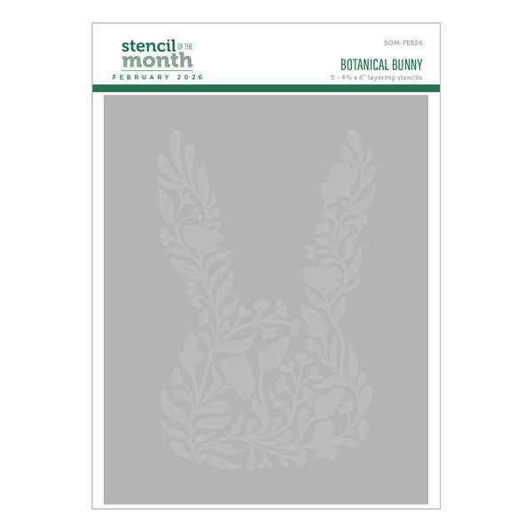 This month's Stencil "Botanical Bunny" is perfect for making cards, decor, and more.