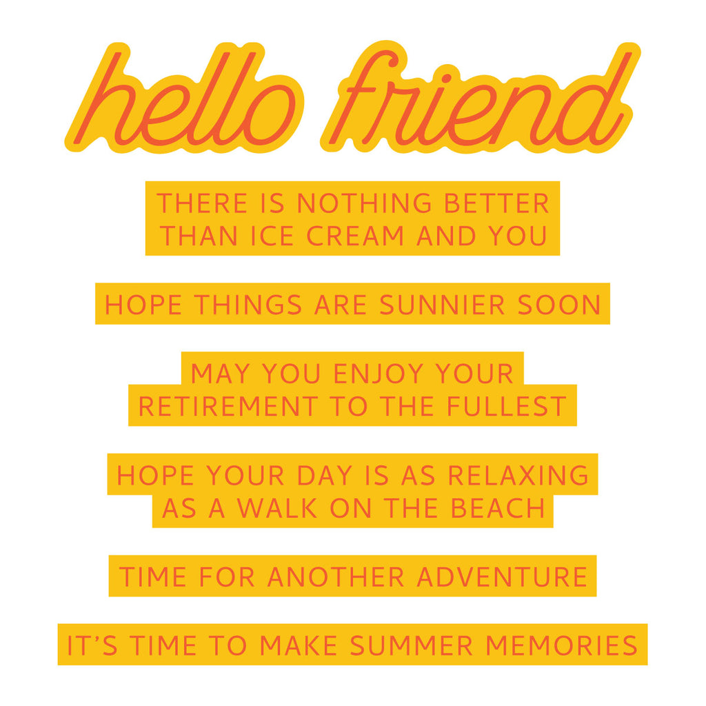 Summertime Sentiments- Glimmer Hot Foil of the Month (Plates & Die Only). Released June 2024 to our Glimmer Hot Foil Kit of the Month Club, it is a wonderful addition to your glimmer collection. . Glimmer Hot Foil Plates are designed to be used with the Spellbinders Glimmer Hot Foil System (or other compatible hot foil system). Depending on its design, some plates June be used for letterpress and embossing.
