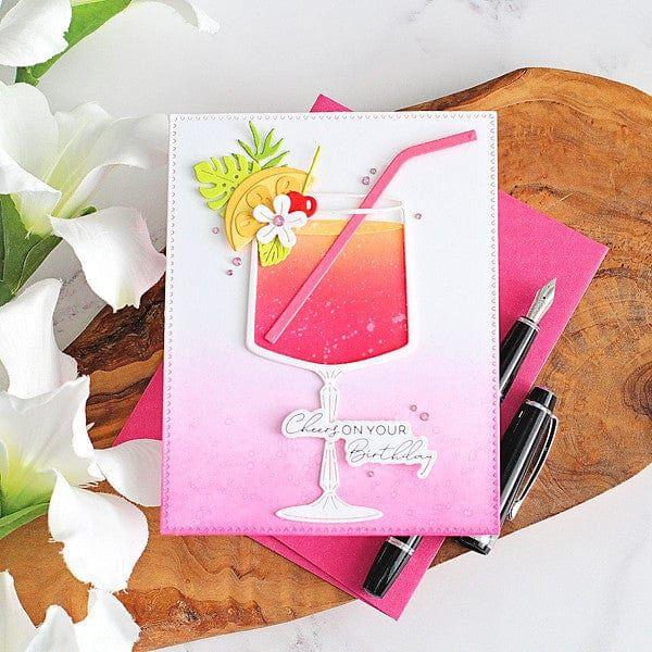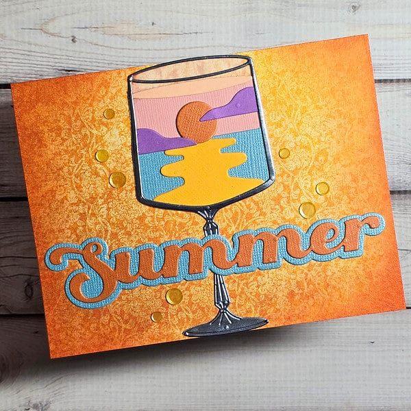 Sunset in a Glass Etched Dies are part of the Happy Hour Collection. When assembled, this fun set of 12 thin metal cutting dies creates a sunset scene in a cocktail glass. Add a straw or stirrer with a hello banner for the perfect touch!