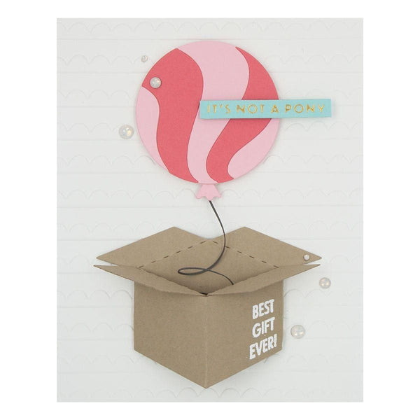 Surprise Box Etched Dies is from the Birthday Celebrations Collection. The set of four thin metal cutting dies assembles into a dimensional open box design. Add in a few balloons, balloon animal, cake and other items from the collection. When assembled, it measures 1.00 x 3.00 x 1.875 in./2.54 x 7.62 x 4.76 cm. Goes well with GLP-324 Birthday Unboxing Glimmer Hot Foil Plates & Die Set and STP-117 Birthday Unboxing Sentiments Clear Stamp Set.