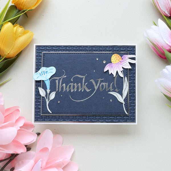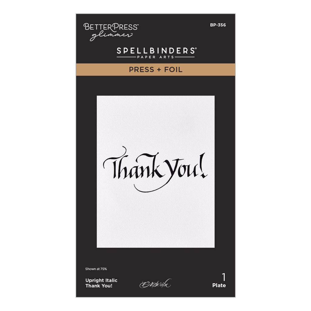 Upright Italic Thank You! Press + Foil Plate is part of the Upright Italic Everyday Sentiments Collection by Paul Antonio. The plate impresses Thank You! in a wonderful Italic font penned by the fabulous Paul Antonio! Makes a beautiful greeting on a card front.