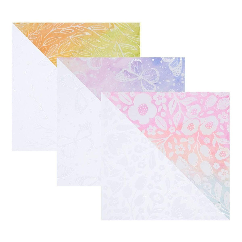 Water Color Resist 6 x 6" Paper Pad is a part of the Serenade of Autumn Collection. This 6 x 6-inch paper pad includes 6 sheets of heavy-weight paper with printed resist designs. There are two sheets each of a leafy spiral, a swirl of butterflies, and a cheerful floral design. Paint right over the translucent printed designs and watch as they come to life!